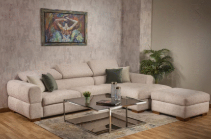 The New Lion Sofa Set is designed for both elegance and comfort. Featuring a spacious corner sofa, an additional sofa, and a pouf, it brings versatility to your living space. Made from natural red beech wood and upholstered with high-quality treated fabric, this set guarantees durability, style, and comfort.