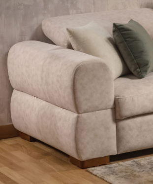 The City combines modern elegance with practical comfort. Designed with a spacious corner sofa, a stylish sofa, and a versatile pouf, it enhances any living room with both functionality and charm. Crafted from natural red beech wood and upholstered with treated high-quality fabric, it offers durability and a refined look.