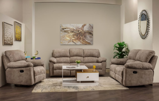 The Lazy Boy Sofa Set brings comfort and functionality together. Featuring a durable natural beech wood frame and high-quality treated fabric, this set includes a stylish rocking swivel chair for added relaxation. Perfect for both modern and classic living spaces, with customization options available in fabrics and sizes.