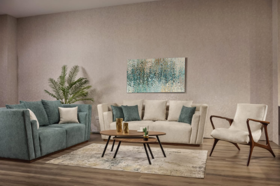The Musk Sofa Set combines elegance with practicality. Built from natural red beech wood and upholstered with treated fabric, it ensures durability and long-lasting comfort. A stylish choice for any modern home, available with customization options.