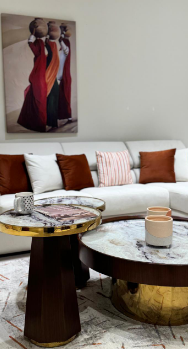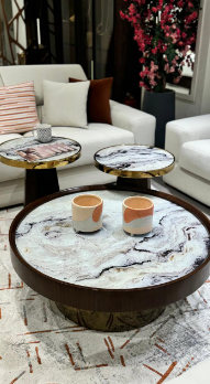 The Circle Table combines modern design with premium craftsmanship. Featuring a marble-effect glass top, sturdy natural wood, and stainless steel base with PVD coating, this piece adds a sophisticated centerpiece to any living space.