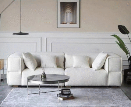 The Cube Sofa Set is designed for both comfort and durability. Crafted from natural red beech wood and upholstered with treated fabric, it offers lasting quality and a refined look. Perfect for modern living spaces, with customization available to match your style.