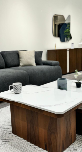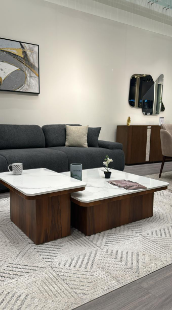 The Double Coffee Table Set offers a modern and practical design with two versatile tables. Made from natural wood and topped with durable engineered marble, this set combines functionality with elegance.